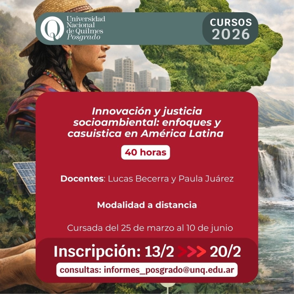 [FORMACIÓN] Curso de Posgrado UNQ Innovación y justicia socioambiental: enfoques y casuística en América Latina
